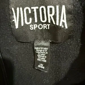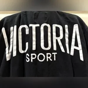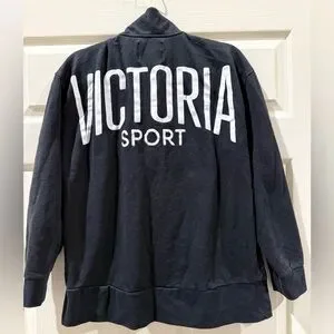 Stylish black quarter-zip pullover by Victoria Sport. Perfect for casual wear.minor signs of normal everyday wear. No obvious damage. No stains, tears, snags,etc.