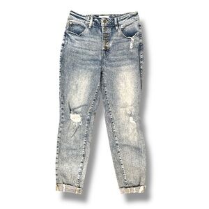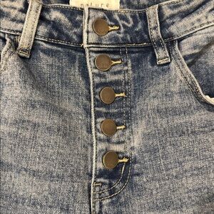 Stylish blue jeans from Nature Denim. Perfect for casual wear. Destructed look. Stretch denim. Gently used condition. 90's wash. Ankle length.