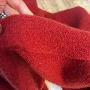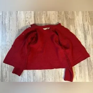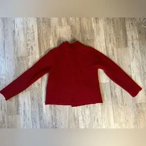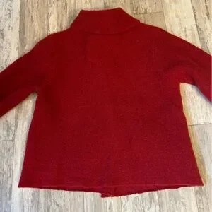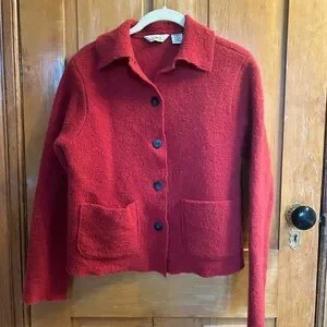 LL. Bean vintage boiled wool cardigan jacket. Beautiful red/orange color. Small hole located at back collar on inside, but as shown in photos, is not seen from other side of collar. Size small. Measurements in photos.