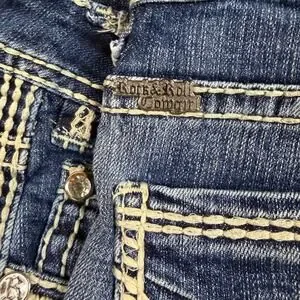 VTG Rock and Roll Cowgirl Riding Jeans 30x36 Measure 34x30 Medium Wash Bootcut