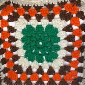 Beautiful hand knit fall vest in the best colors - beige, orange, brown, and green.