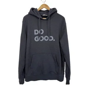 The Cotopaxi Men’s Pullover Do Good Hoodie Sweatshirt in size Large is a classic blue sweatshirt made from organic cotton, featuring a graphic “Do Good” print design with long sleeves, a drawstring closure, and a hood. Perfect for the athletic, athleisure, casual, and classic styles, this hoodie is machine washable and has pockets for added convenience. Whether it's winter, summer, fall, or spring, this hoodie is a versatile and sustainable choice for any season, all while promoting a positive message with its "Do Good" graphic print. Made in India, this hoodie embodies a combination of style, comfort, and activism