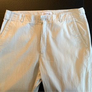 CALVIN KLEIN. Cream Twill Pants, flat front w/ two pockets and two back …