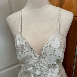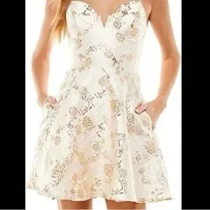 LULUS.Shiny Ivory & Gold Jacquard Mini Dress. Size S. Adjustable Straps.