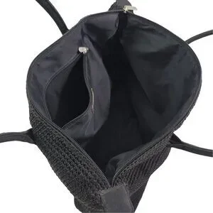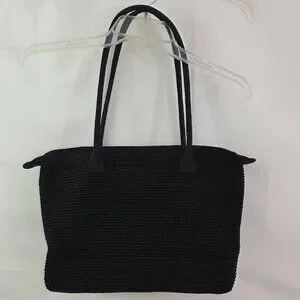 Style Tags: The SAK, Crochet, SAK, Handbag, Shoulder Bag, Bag, Knit, Elliott Lucca, Pockets, Purse, Black, Double Strap, Rectangular, Collectible