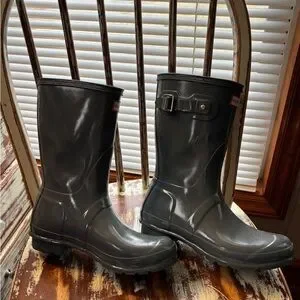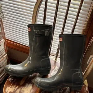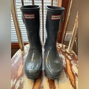 Hunter shorter rain boots size 8 gray Interior Logo Detail Rain Boot