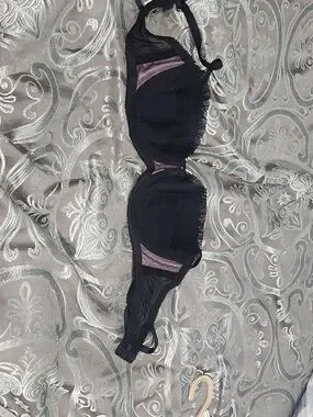 Y2k Jezebel Black Lace Pink Ruched Satin Bra Size 34C