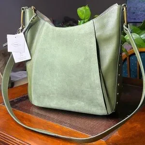NWT Fossil Talia hobo comes with wallet chive Suede & Leather Shoulder Hobo Bag