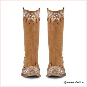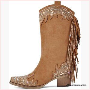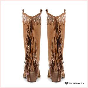 Brand new, never worn, and in flawless condition — these stylish western boots deliver a bold, head-turning look perfect for concerts, festivals, or casual outings. The studded fringe moves with every step for a fun and dynamic cowgirl chic vibe.