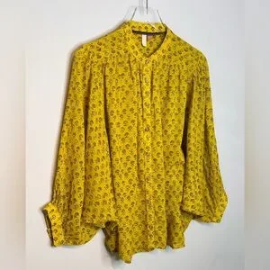 Anthropologie Pilcro The Sidney Batwing Yellow Green Floral Print Blouse Shirt.