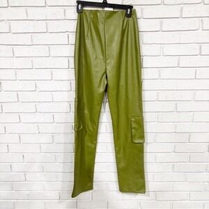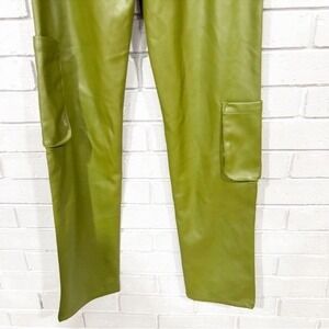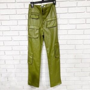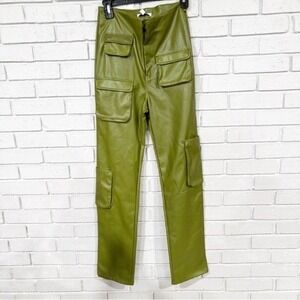 AFRM Moss Green Faux Leather Cargo Pants High Rise Straight Leg Utility | Small