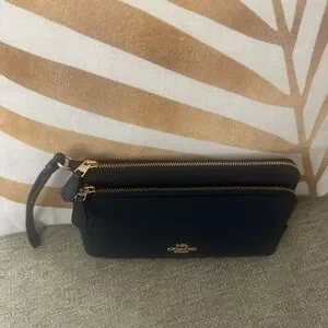 Coach Midnight Pebbled Leather Double-Zip Wristlet | Gold Hardware NWT $198 MSRP