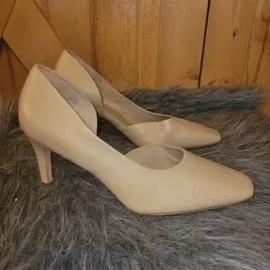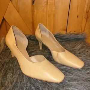 Vince Tiana Point-Toe Nude Leather Pumps square toe Size 9.5 M