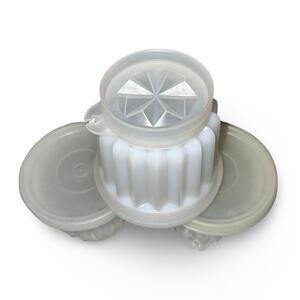 Create the perfect retro desserts with this set of three Tupperware Jel-ette mini molds! These 1/2 cup individual molds are perfect for gelatin, mousse, or chilled salads. Each mold comes with its coordinating lid for easy chilling in the fridge.