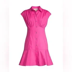 NEW $225 MICHAEL MICHAEL KORS Pleated Cap Sleeve Mini Dress Pink Medium Shirt