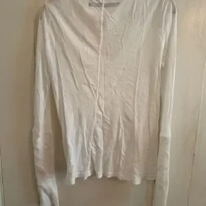 This elegant white V-neck top. Includes the thumb holes typical of Enza Costa. Good condition.