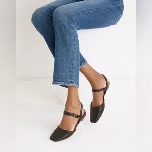 Madewell | Women’s Black Leather The Jeanne Slingback Adjustable Strap Flats 7