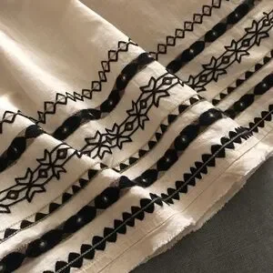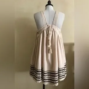 Great cotton summer top by Free People, featuring intricate black embroidery at the hem. Perfect for casual outings or special occasions.