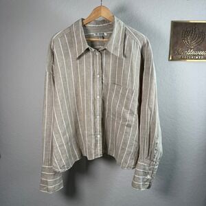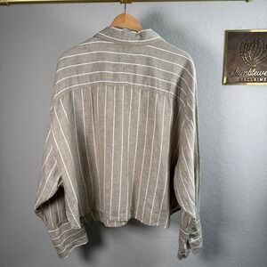 Banana Republic Womens XXL Tan White Striped 100% Linen Boxy Cropped Shirt