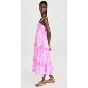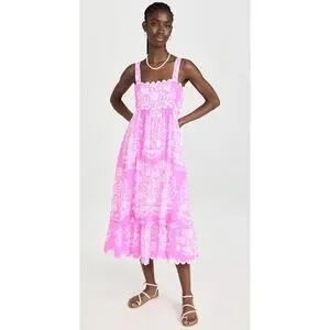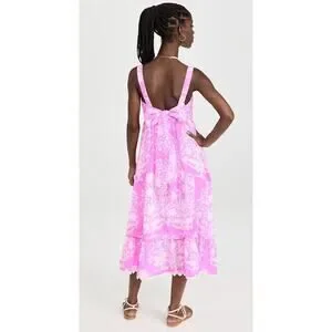 Juliet Dunn Square Neck Palladio Print Cotton Midi Dress Pink White Orchid