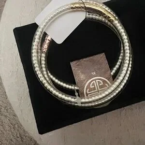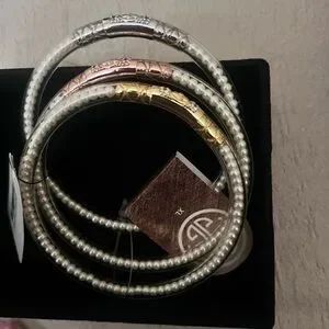 BUDHA girl 3 QUEENS Enhance your style with this elegant bangle set featuring lustrous pearls and gold accents. Perfect for any occasion.