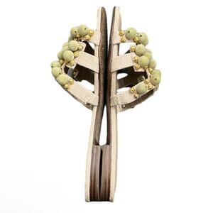 Description: Linen, embellished detail upper, leather sole, slip-on style, open toe, lightly padded footbed