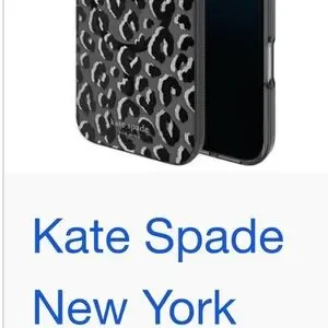 iPhone 16 ProMax Kate spade Phone Case with Silver Glitter Leopard Print NEW