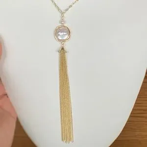 This is a 32 inch white cultured coin pearl tassel necklace that has a clasp, so the buyer can make it virtually any length they choose :).