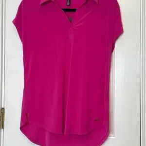 Jones New York Magenta Collared Blouse Short Sleeve V-Notch