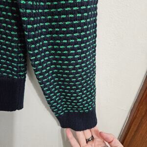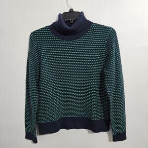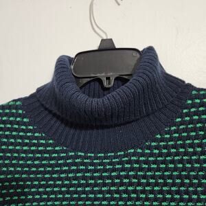 NWT! J. Crew Textured Navy/Green Turtleneck Womens Sweater. Size Large.