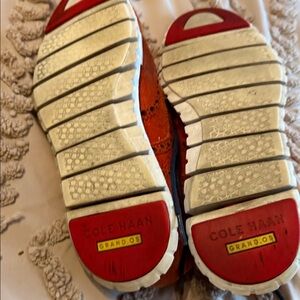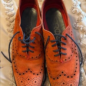 Cole Haan Orange Suede Wingtip Oxfords with Navy Laces EUC