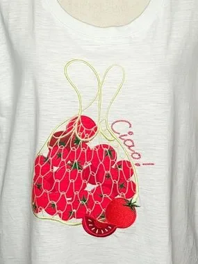 Jane + Delancey Red Tomatoes In A Bag Graphic "Ciao" T-shirt Size XL