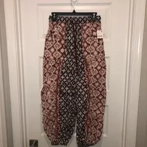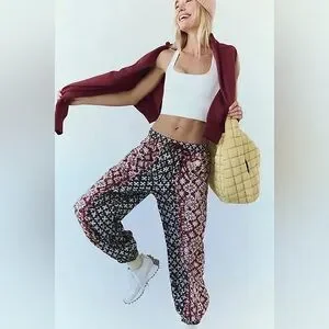New Free People FP Movement Printed Set Me Free Swishy Barrel Pants sz XS
