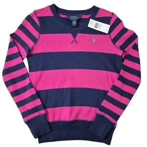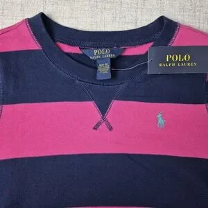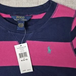 NWT Polo Ralph Lauren Striped Sweatshirt | Pink & Navy | Medium (8-10)