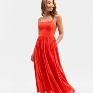 On 34th red spaghetti strap maxi dress. Side zipper. Size 8