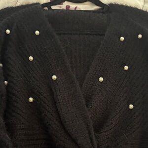 Black Sweater with Pearl Accents