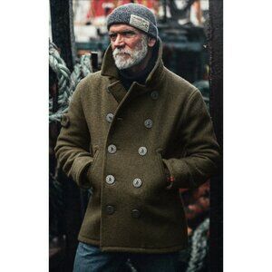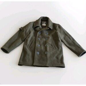 &Sons Trading Company Heavy Wool Blend Peacoat Mens XL Military Green Elbow Patches