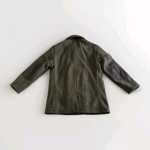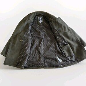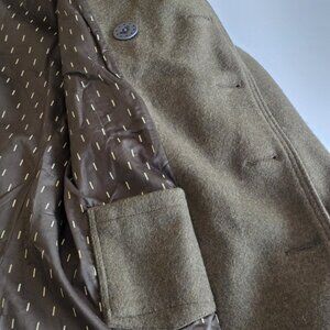 & Sons Heavy Wool Blend Peacoat Mens M Military Green Elbow Patches Storm Collar