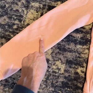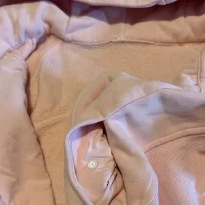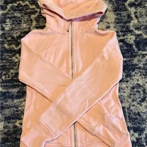 Lululemon Scuba full-zip hoodie, size 4. Small stain on the right arm. Light pink color.