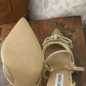 NWOB Steve Madden Gold Heels with Rhinestone Bow. Missing a few stones. Size 7