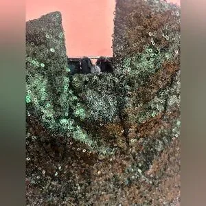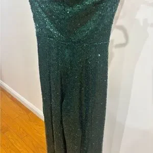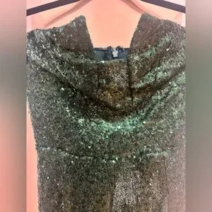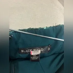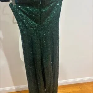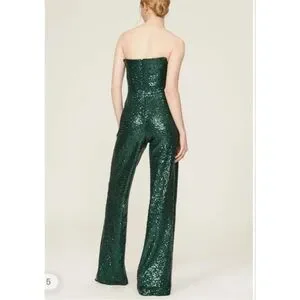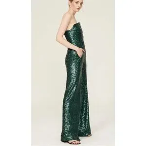 A sharp sweetheart neckline and wide legs look formal fab in this jumpsuit by Black Halo draped in emerald sequins.