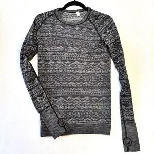 Lululemon Rest Less Pullover Top Heathered Black Colorway Thumb Holes