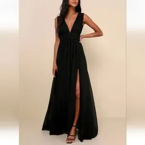 Lulus NWOT Heavenly Hues Black Maxi Dress Size L
