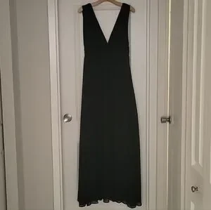 Airy woven chiffon effortlessly drapes from a sleeveless bodice with a plunging neckline and a gathered, banded waist. A thigh-high side slit emphasizes the elegant movement of the A-line maxi skirt. Hidden back zipper/clasp.