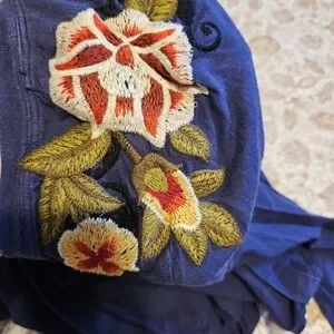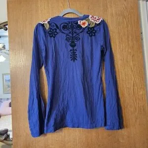 Johnny Was Blue Floral Embroidered Long Sleeve Top
