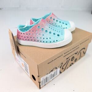 Native Jeffersons Toddler 4 Shoes - Hollywood Hydrangea Bling/Shell White - New with box