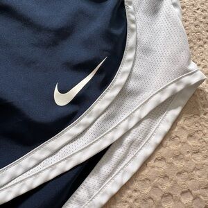 Nike Women's Dri-FIT Tempo Running Shorts in navy blue and white. Size Small. 3” inseam.