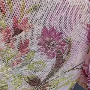 Women's Pink Floral Midi Dress with Long Sheer Sleeves