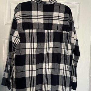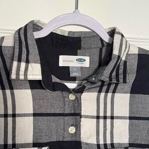 Navy blue and white plaid boyfriend flannel