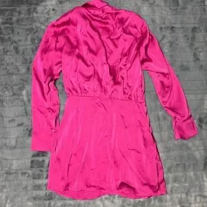Strut & Bolt Magenta Pink Satin Wrap Mini Dress Long Sleeve Ruched Size M